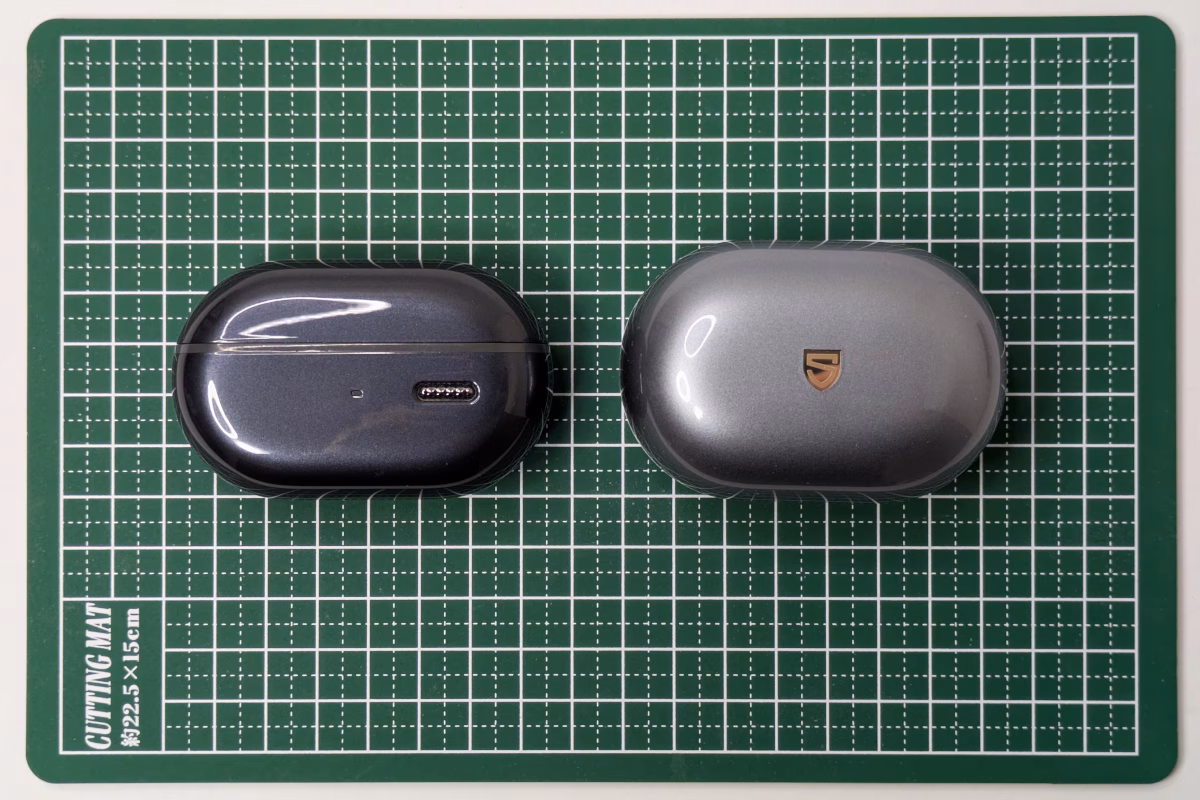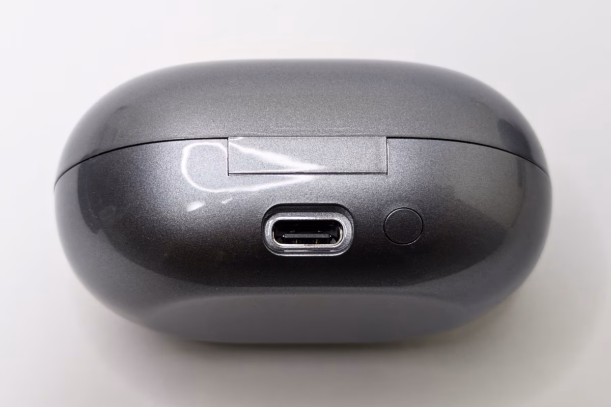 ケース後部にはペアリング兼リセットボタンと USB Type-C 充電ポートがあります。